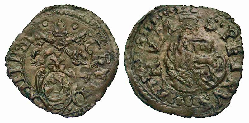 Lot S71-303. ITALY, Papal States. Gregory XIII, 1572-1585 AD. Billon Quattrino