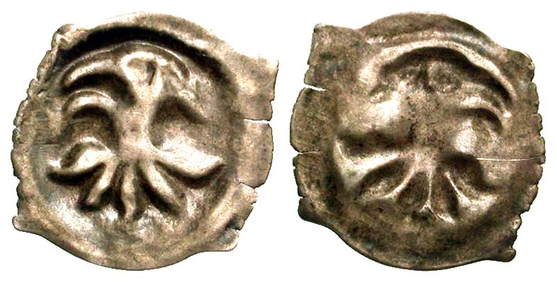 GERMANY, Freiburg im Breisgau. 1368-1390. AR Rappen (0.32 gm). Head of raven. Bonhoff.1788. Toned VF+