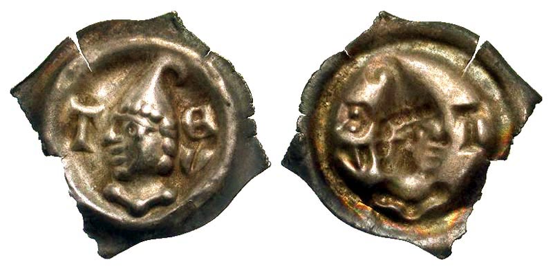 GERMANY, Tiengen. Lords of Krenking, after 1387 AD. AR Bracteate (0.31 gm). Bust in a mitre, T-E-V. Bonh.1793. Toned XF. Choice.