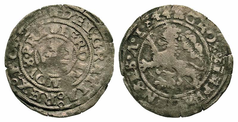 Lot S71-324. BOHEMIA. Ferdinand I, 1526-1564 AD. AR Prager Groschen