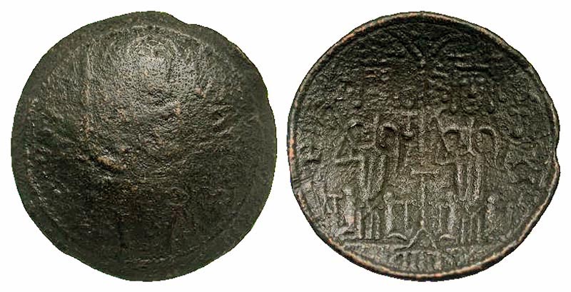HUNGARY. Bela III, 1172-1196 AD. AE Scyphate Unit (2.68 gm). Two crowned figures enthroned facing, hoilding sceptres / The Virgin and Child seated. Huszar.72. VF, weak obv, brown patina.