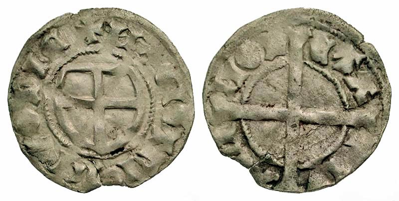 LIVONIAN ORDER. Anonymous, 1422-1470 AD. AR Schilling (1.14 gm) of Reval. Shield of arms / Long cross. Haljak.20. Neum.206a. VF, some shadow.