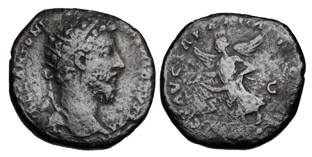 MARCUS AURELIUS, 161-180 AD. Æ Dupondius (11.55 gm). Radiate head / Victory advancing left, holding garland. RIC.927. aVF, dark brown patina.