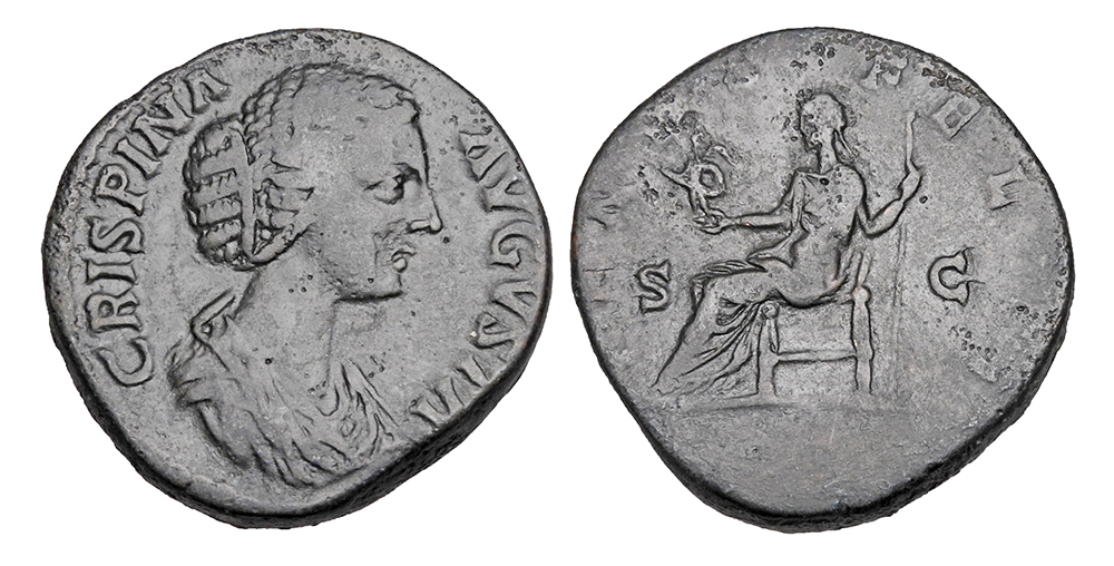 Lot 189. CRISPINA, wife of Commodus, d. 183 AD. AE Sestertius. Scarce.