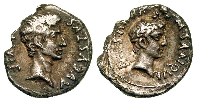 Lot S71-166. JULIUS CAESAR, assassinated 44 BC and AUGUSTUS, 27 BC-14 AD. AR Denarius. Rare. ex R Forman collection.