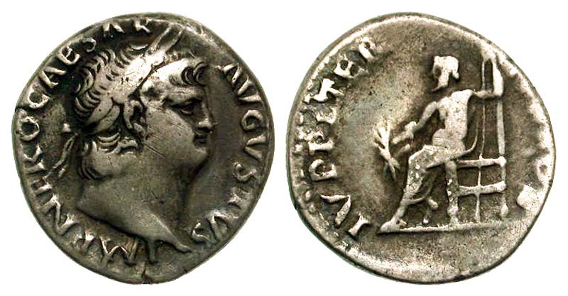 NERO, 54-68 AD. AR Denarius (3.32 gm) of Rome. Laureate head / Jupiter enthroned with thunderbolt and scepter. RSC.119. RIC.53(R). Tonded aVF. Rare.