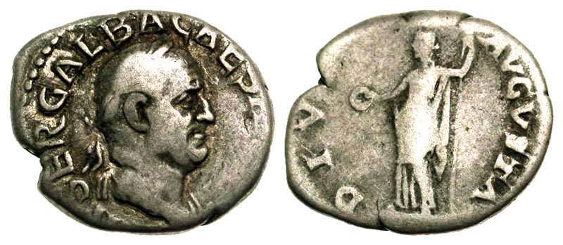 Lot S71-175. GALBA, 68-69 AD. AR Denarius. Rare.