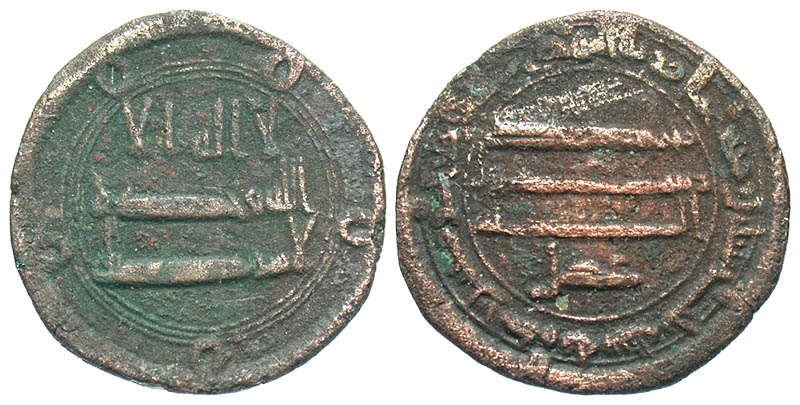 Lot 21-146. Abbasid Caliphate. al-Mahdi. 158-169/775-785. Æ fals. al-Kufa mint, Dated A.H. 161. Rare.