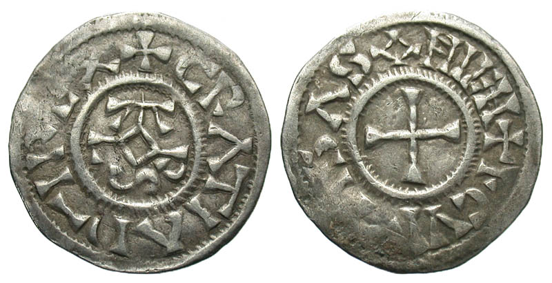 Lot 21-173. France, Carolingians. Charles the Bald. 840-887. AR denier. Courcessin (Courgeon) mint, Struck 864-877.