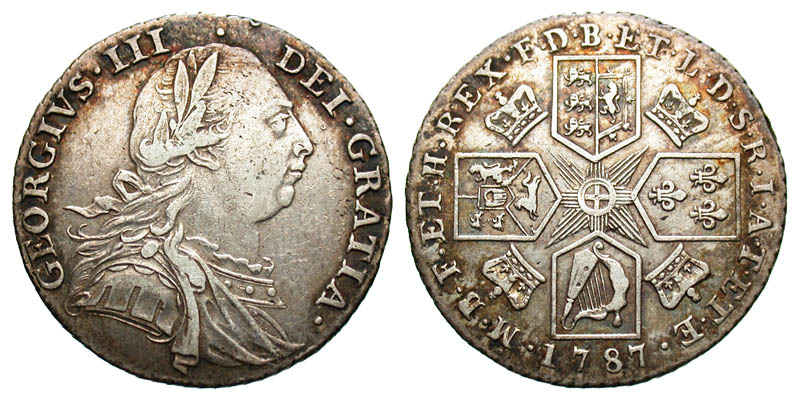 Lot 21-198. British, House of Hanover. George III. 1760-1820. AR shilling. London mint, Struck 1787.
