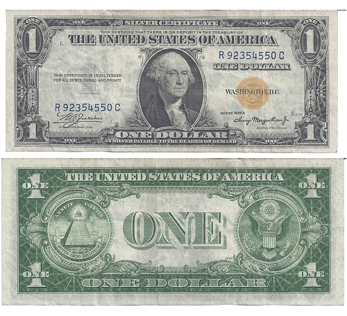 USA $1 Silver Certificate, North Africa, 1935. USA $1 Silver Certificate, North Africa, 1935. RC block, gold seal. Ch VF.