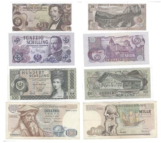 Lot of Four Austrian Bank Notes. Lot of Four Austrian Bank Notes, one from Belgium.