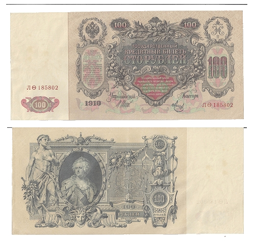 Lot of Six U.S.S.R. Bank Notes. Lot of Six U.S.S.R Bank Notes, 1898-1974. Several large notes.