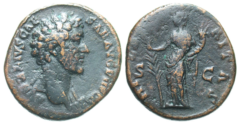 Lot 22-081. Marcus Aurelius. A.D. 161-180. Æ as. Rome mint, Struck A.D. 145. Scarce.