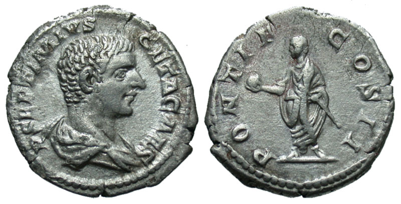 Lot 22-082. Geta. As Caesar, A.D. 198-209. AR denarius. Rome mint, Struck A.D. 209.