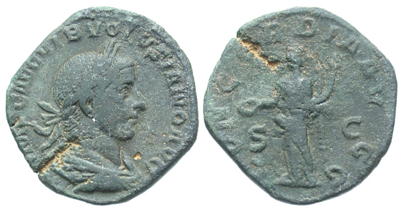 Lot 22-090. Volusian. A.D. 251-253. Æ sestertius. Rome mint, Struck A.D. 253.
