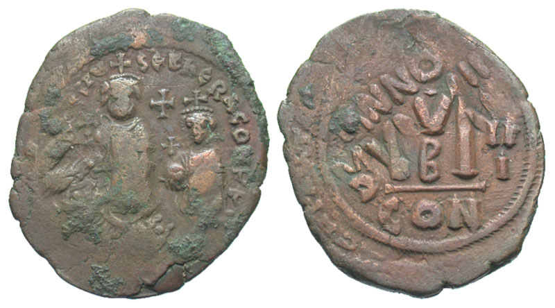 Lot 22-124. Heraclius. 610-641. Æ Follis. Constantinople mint, year 3=612-613.