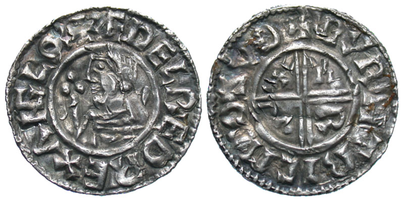 Lot 22-160. Anglo-Saxon, Kings of All England. Aethelred II. 978-1016. AR penny. Southwark mint, Crux type, struck ca. 991-997. Byrtric, moneyer.