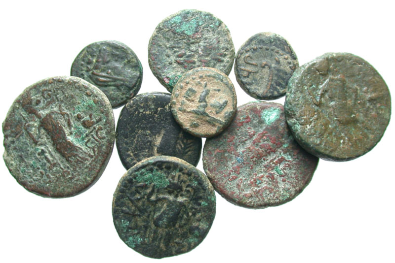 Lot of 9 Provincial coins from Ascalon in Judaea. A nice variety of emperors and types, VG-aVF, sandy patina.
