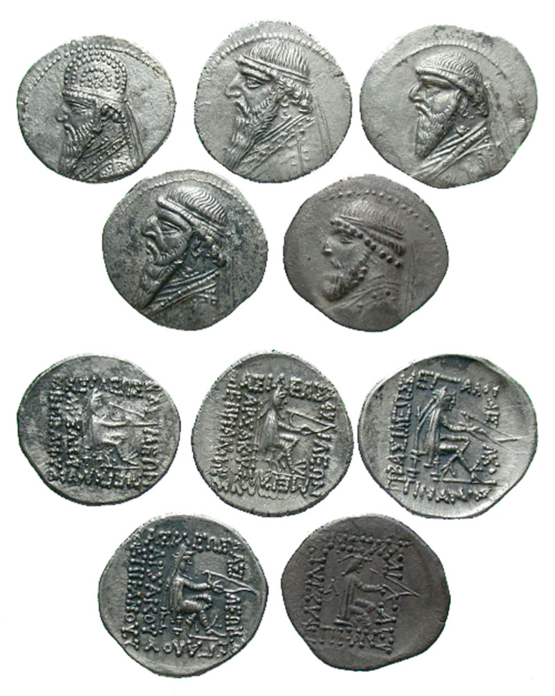 Lot of 5 Parthian Drachms. Mithradates II. Average VF condition.