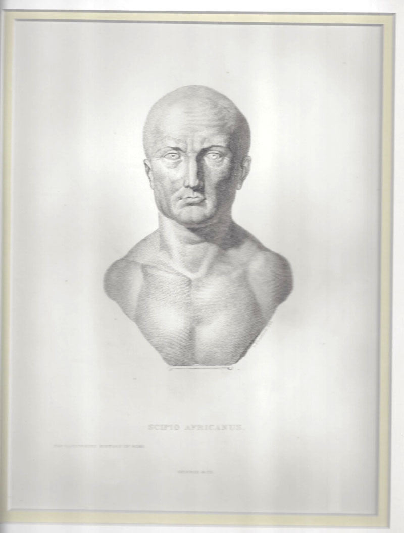 Gebbie & Co. Scipio Africanus. 1880s. Steel plate engraving. Gebbie & Co. Scipio Africanus. 1880s. Steel plate engraving. 11x14 in. double matted with a professional bevel window top matt of acid-free Bainbridge. Print is hinged in place (not glued), the back is draped with a sheet of acid free glassine, and finally another sheet of Bainbridge is tipped onto the back. 100% ready to frame. Fine.