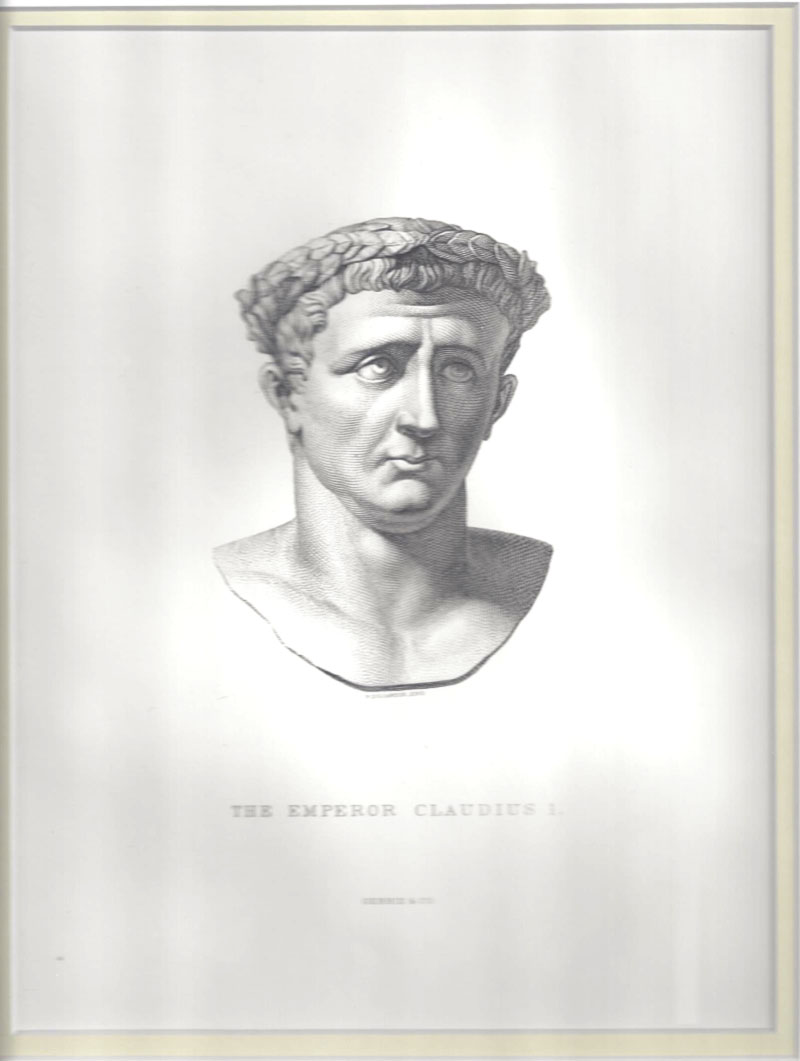 Gebbie & Co. Claudius 1. 1880s. Steel plate engraving. Gebbie & Co. Claudius 1. 1880s. Steel plate engraving. 11x14 in. double matted with a professional bevel window top matt of acid-free Bainbridge. Print is hinged in place (not glued), the back is draped with a sheet of acid free glassine, and finally another sheet of Bainbridge is tipped onto the back. 100% ready to frame. Fine.
