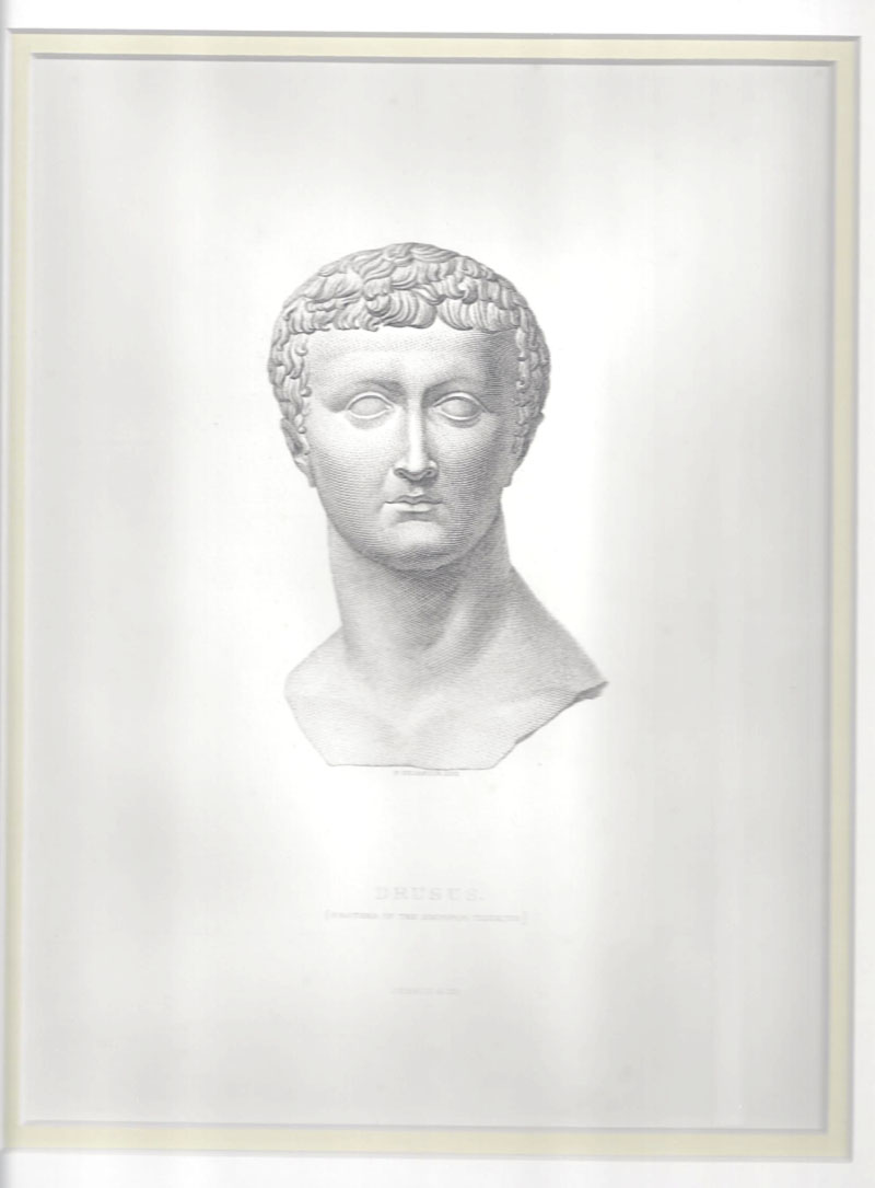 Gebbie & Co. Drusus. 1880s. Steel plate engraving. Gebbie & Co. Drusus. 1880s. Steel plate engraving. 11x14 in. double matted with a professional bevel window top matt of acid-free Bainbridge. Print is hinged in place (not glued), the back is draped with a sheet of acid free glassine, and finally another sheet of Bainbridge is tipped onto the back. 100% ready to frame. Fine.