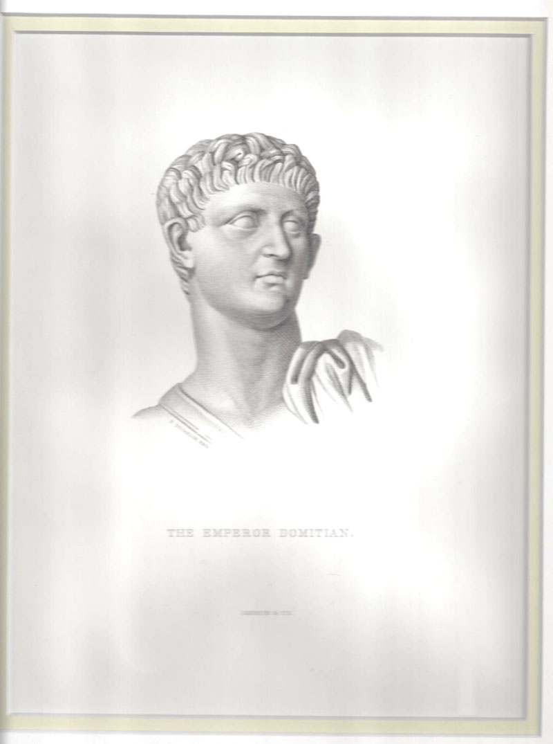 Gebbie & Co. Domitian. 1880s. Steel plate engraving. Gebbie & Co. Domitian. 1880s. Steel plate engraving. 11x14 in. double matted with a professional bevel window top matt of acid-free Bainbridge. Print is hinged in place (not glued), the back is draped with a sheet of acid free glassine, and finally another sheet of Bainbridge is tipped onto the back. 100% ready to frame. Fine.