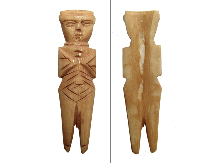 Coptic Bone Figure. A nicely carved Coptic bone figure, Egypt, c. 6th – 10th Century AD, with large eyes and stylized torso and arms. H: 5/8” (6.6 cm). Intact and a very nice example! Ex old English collection, purchased in Egypt in the early 20th Century.