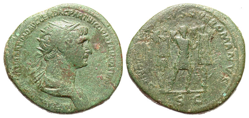Lot 23-087. Trajan. A.D. 98-117. Æ dupondius. Rome mint, Struck A.D. 116.