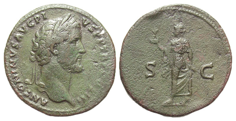 Lot 23-094. Antoninus Pius. A.D. 138-161. Æ sestertius. Rome mint, Struck A.D. 141-143.