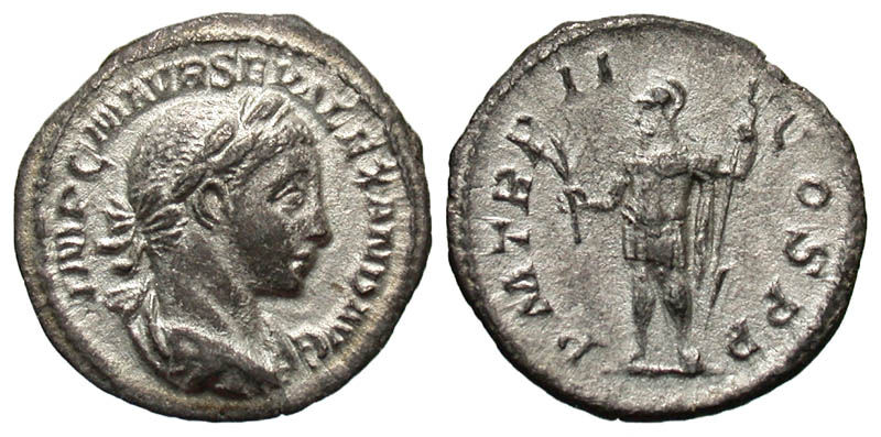 Lot 23-104. Severus Alexander. A.D. 222-235. AR denarius. Rome mint, Struck A.D. 223.