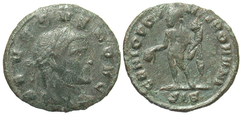 Lot 23-120. Severus II. As Caesar, A.D. 305-306. Æ quarter follis. Siscia mint, Struck A.D. 305-6. Scarce.