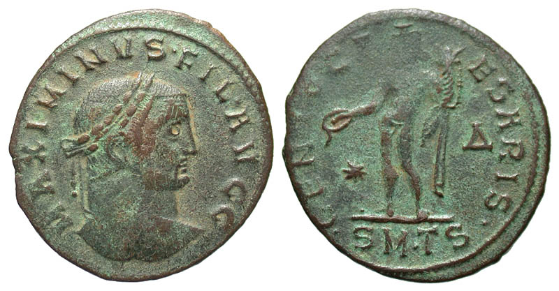 Lot 23-129. Maximinus II Daza. As Filius Augustorum, A.D. 308-309. Æ Follis. Thessalonica mint, A.D. 308.