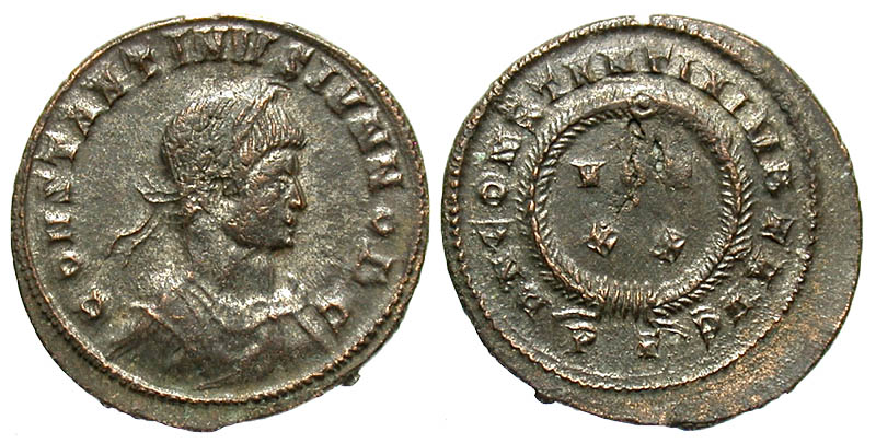 Mule of a Constantine II obverse with a Constantine I reverse