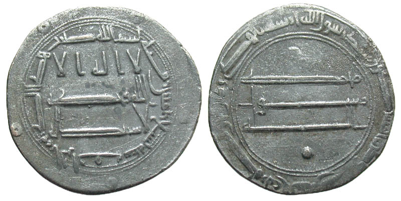 Lot 23-186. Abbasid Caliphate. al-Rashid. 170-193/786-809. AR dirham. Rafiqa mint, Dated A.H. 189. Scarce.