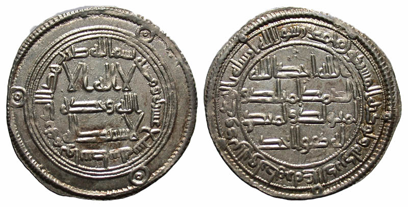 Lot 23-195. Umayyad Caliphate. temp. Hisham. 105-125/724-743. AR dirham. Wasit mint, Dated A.H. 117. Scarce.