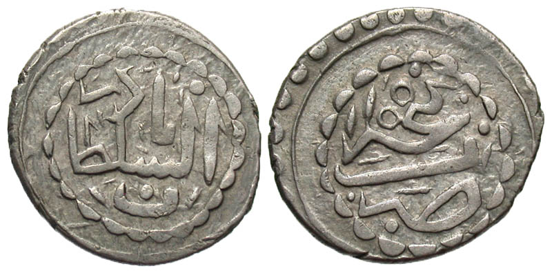Lot 23-196. Ganja Khanate. Shah Verdi Khan. 1747-1760. AR abbasi. Dated A.H. 1169-1172, with fictitious date of 1155.