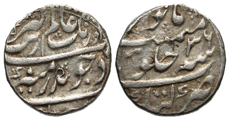 Lot 23-204. India, Mughal Empire. Aurangzeb Almagir. 1068-1111 / 1658-1707. AR rupee. Surat mint, Dated A.H. 1075, RY 7.
