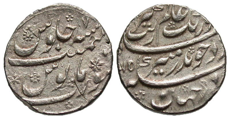 Lot 23-205. India, Mughal Empire. Aurangzeb Almagir. 1068-1111 / 1658-1707. AR rupee. Katak mint, ND, RY 36.
