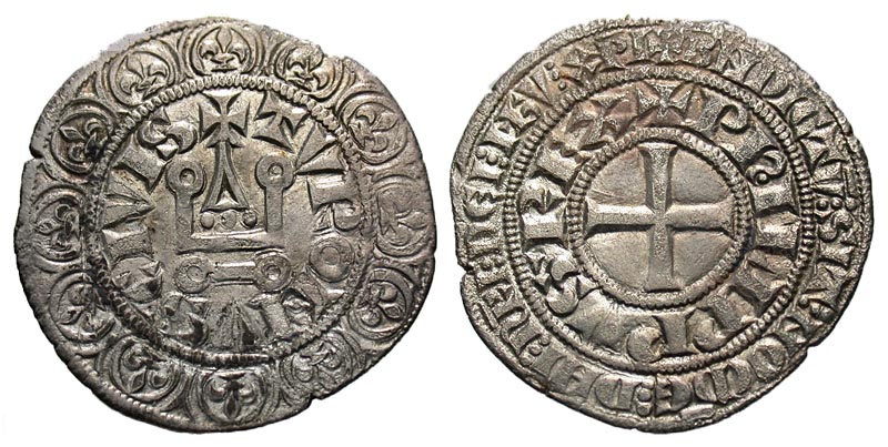 Lot 23-207. France. Philip IV le Bel. 1285-1314. AR gros tournois a l'O rond. 1285-1290.