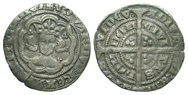 Lot 23-216. England, Plantagenet Kings. Edward III. 1327-1377. AR half groat. London mint, Pre-treaty class C, 1351-1352.