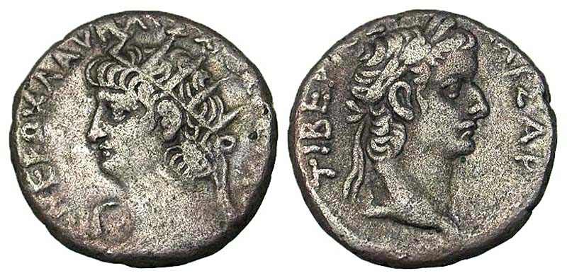Egypt, Alexandria. Nero. A.D. 54-68. BI tetradrachm (23.8 mm, 10.62 g, 1 h). A.D. 66-67. NΕΡΩ KΛΑV ΚΑΙΣ ΣΕΒ ΓΕΡ ΑV, radiate head left with aegis, regnal year (LIΓ) above shoulder / ΤΙΒΕΡΙΟΣ ΚΑΙΣΑΡ, laureate head of Tiberius right. RPC 5295; Milne 256; Dattari 185. aVF.