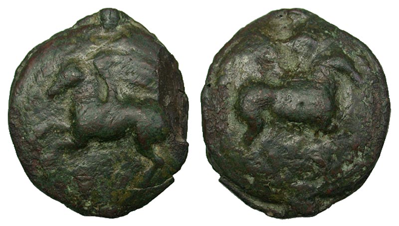 Anonymous. Ca. 275-270 B.C. Æ Aes Grave Triens (55.9 mm, 168.9 g, 0 h). Libral standard. Uncertain Italian mint. Pegasus flying right, S below / Pegasus flying left, S below. Crawford 18/2; Sydenham 16; Thurlow & Vecchi 9. aVF.