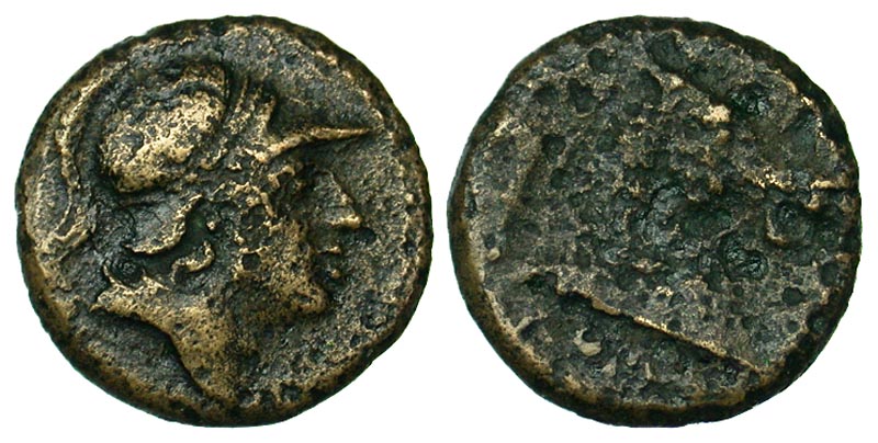 Anonymous. Ca. 241-235 B.C. Æ litra (14.9 mm, 2.87 g, 11 h). Rome, Ex Goodman collection. Helmeted head of Mars right / ROMA, horsehead right; sickle behind. Crawford 25/3; Sydenham 26. Fine, porous.