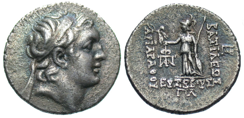 KINGDOM of CAPPADOCIA. Ariarathes IV Eusebes, 220-163 BC. AR Drachm (3.90 gm), yr 33. Diademed head / Athena standing holding Nike, spear and shield. Sim.27. Toned VF.