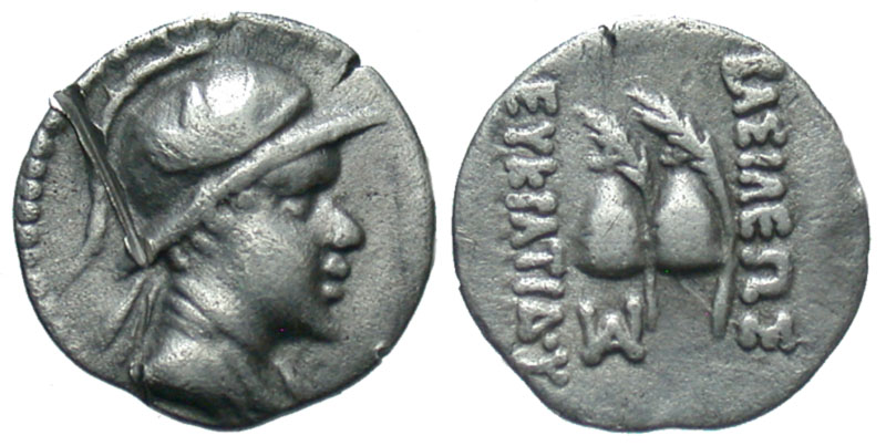Lot 24-121. BAKTRIAN KINGDOM. Eukratides, 171-135 BC. AR Obol