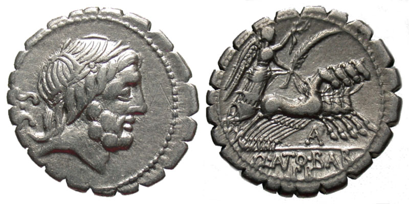 ROMAN REPUBLIC. Q. Antonius Balbus, 83 BC. AR Denarius (3.91 gm). Laureate head of Jupiter / Victory in quadriga. Antonia.1. Cr.364/1. Toned VF+.