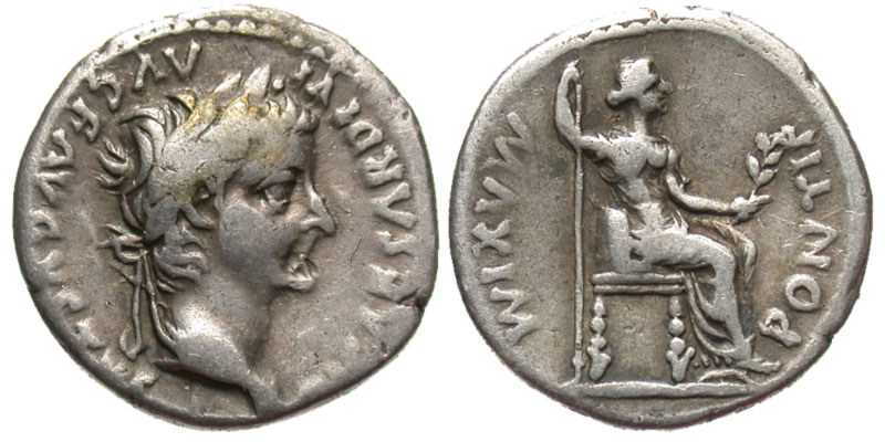 Lot 24-174. TIBERIUS, 14-37 AD. AR Denarius