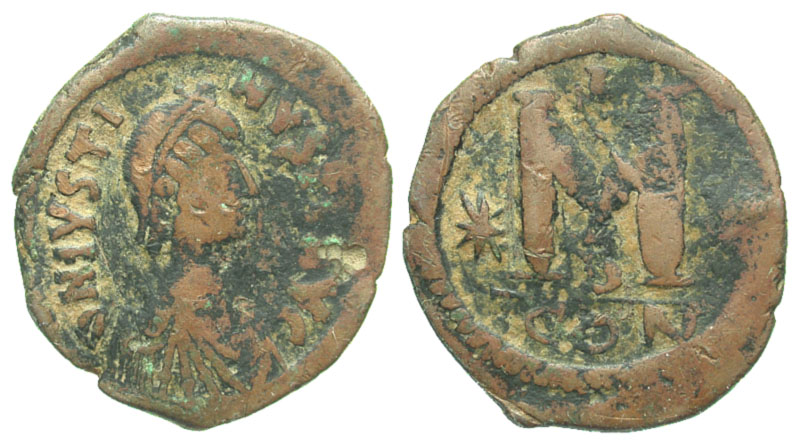 Lot 24-261. BYZANTINE EMPIRE. Justin I, 518-527 AD. AE Follis